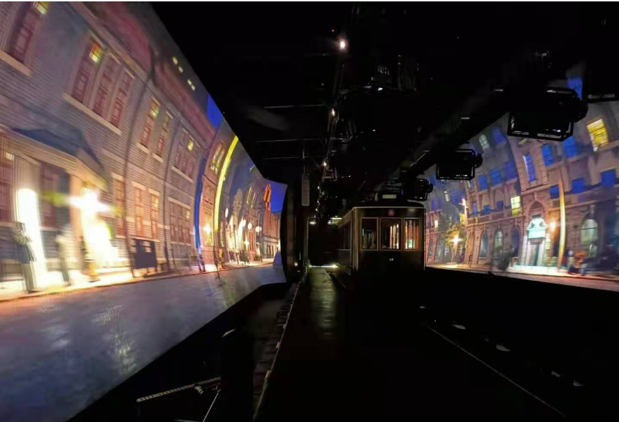 随着文旅产业的发展,旅游业也在打破传统的理念,研发新颖、独特的项目吸引游客,本项目是游客乘坐有轨电车进入一个两侧都是超大屏幕的密闭空间,采用5D技术,屏幕上投射立体超高清影片,有轨电车随着故事的情节精确同步的前进、急转弯、高速飞驰,侧袭等运动,给游客一种全感观刺激体验,目前国内首创。